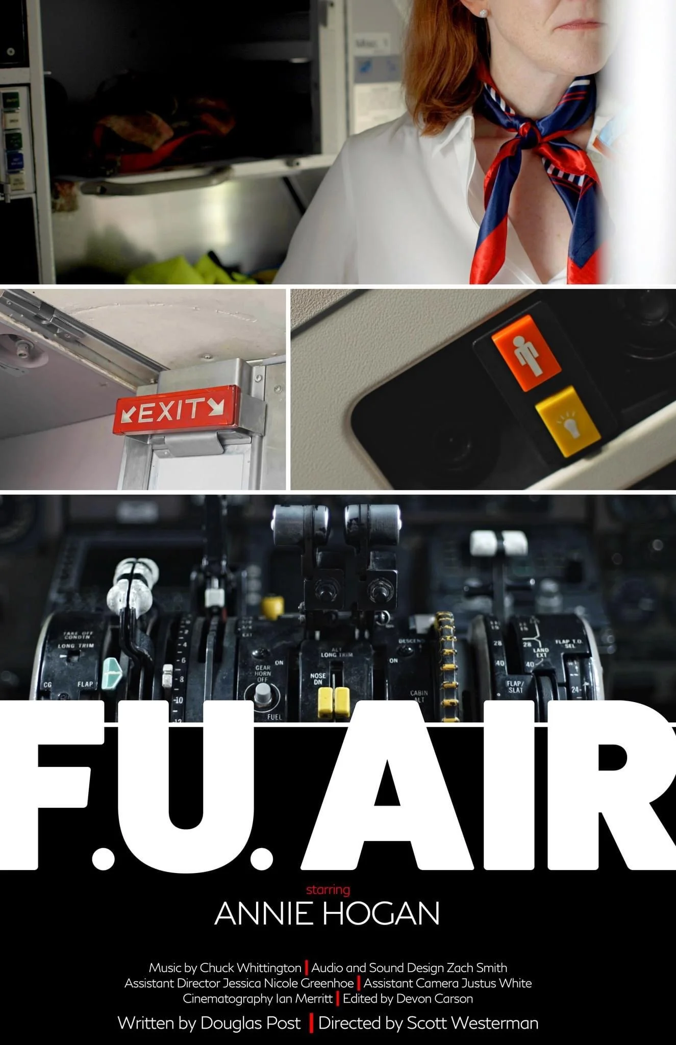 F.U. AIR is a satiric take on the airline industry centered on Hatty (Annie Hogan), a flight attendant who is having the worst day ever and proceeds to take it out on an unprepared plane full of passengers stuck on the tarmac at O’Hare. It was filmed on location on one of the last MD-80 airliners available.